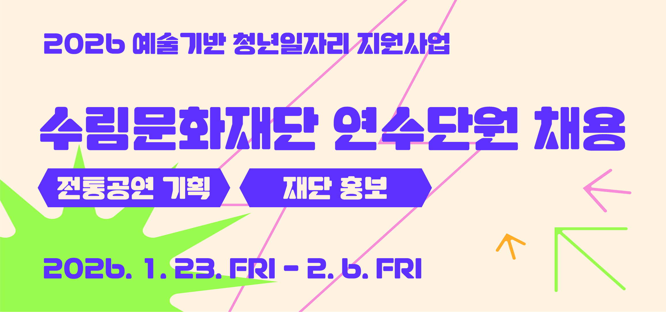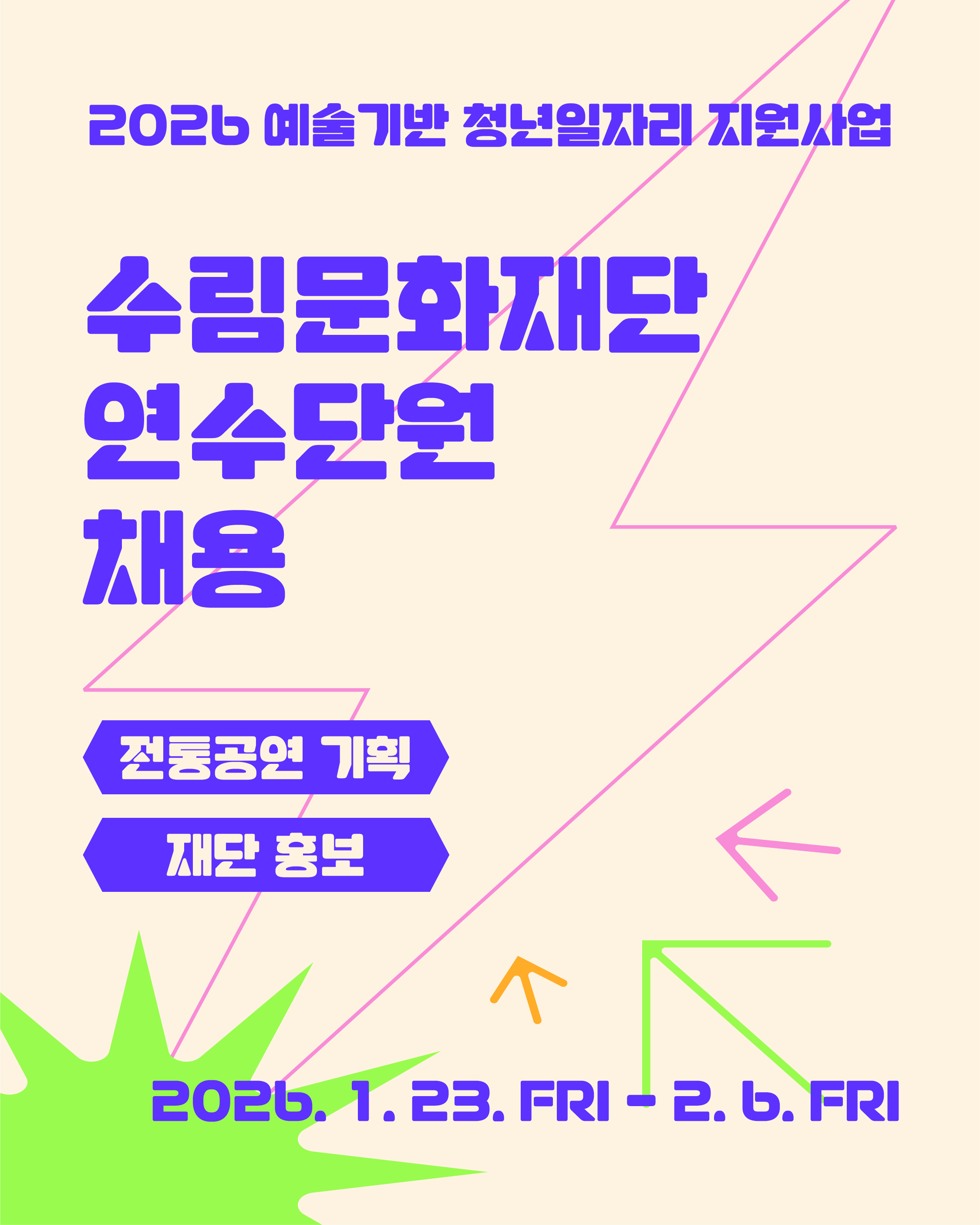 2026년 수림문화재단 청년일자리 연수단원 채용(~2.6)