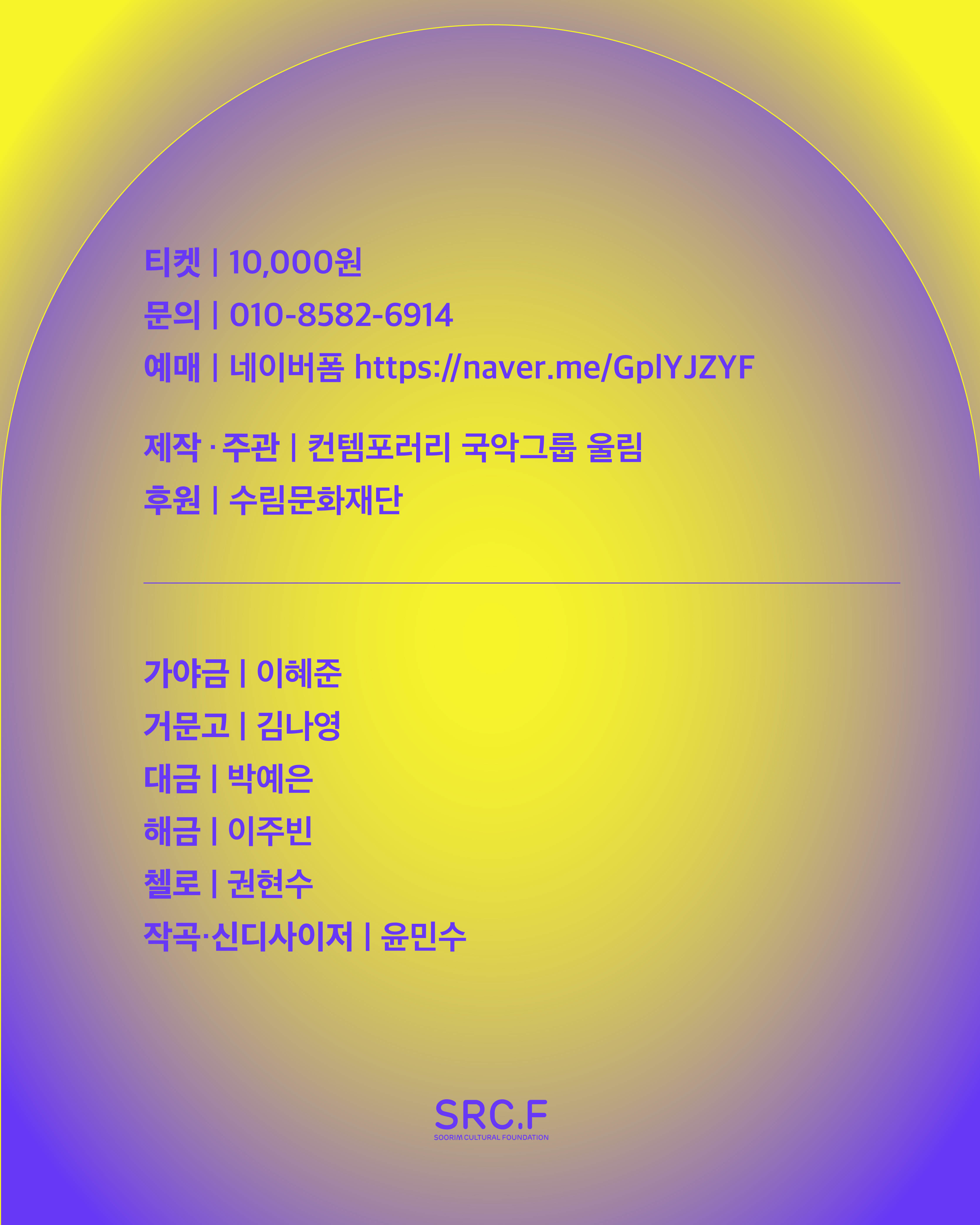 그 속의 구조와 정서를 현대적으로 해석하고자 한다.각 악기의 전통성과 현대성을 입체적으로 조명하며,