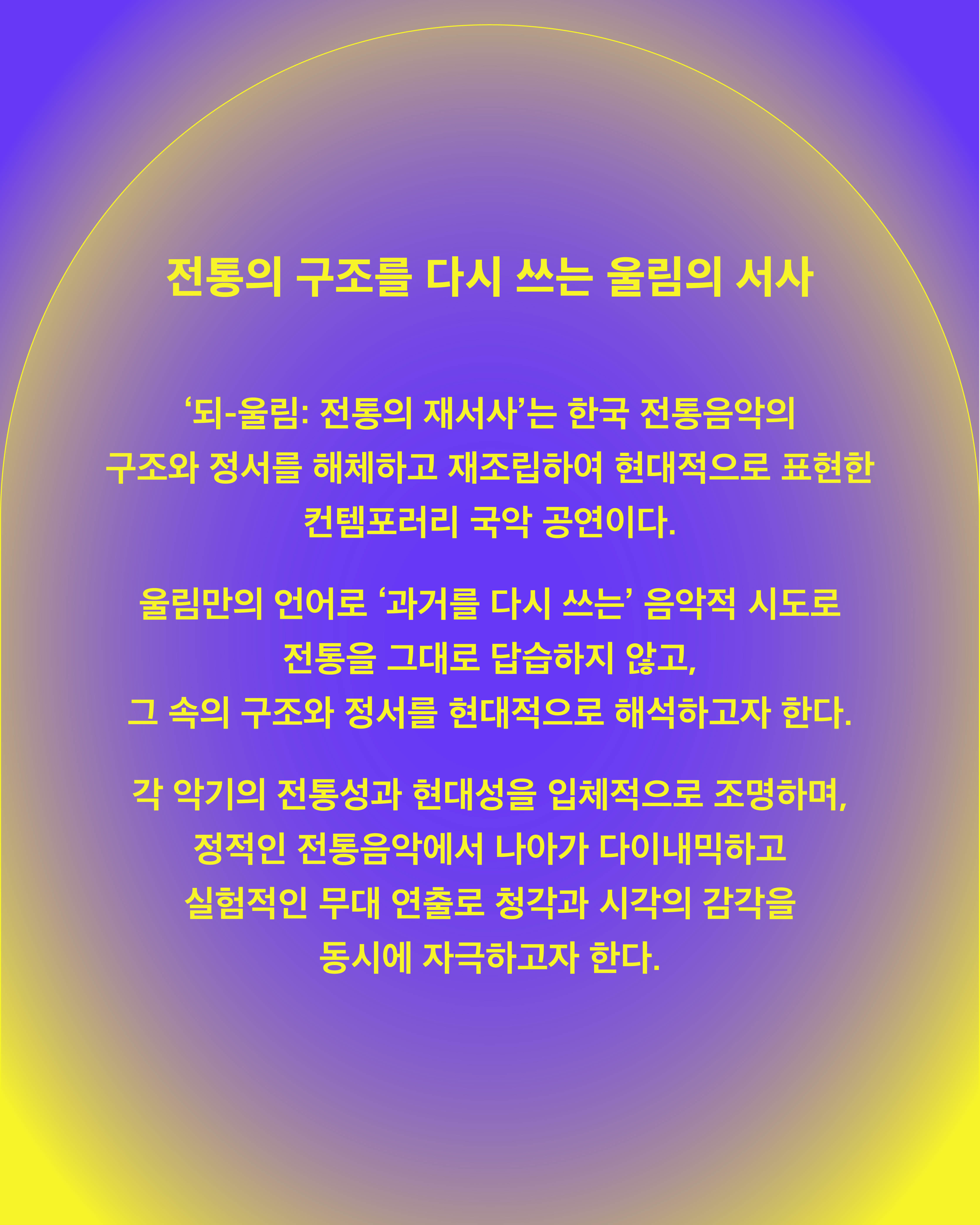 ‘되-울림: 전통의 재서사’는 한국 전통음악의 구조와 정서를
