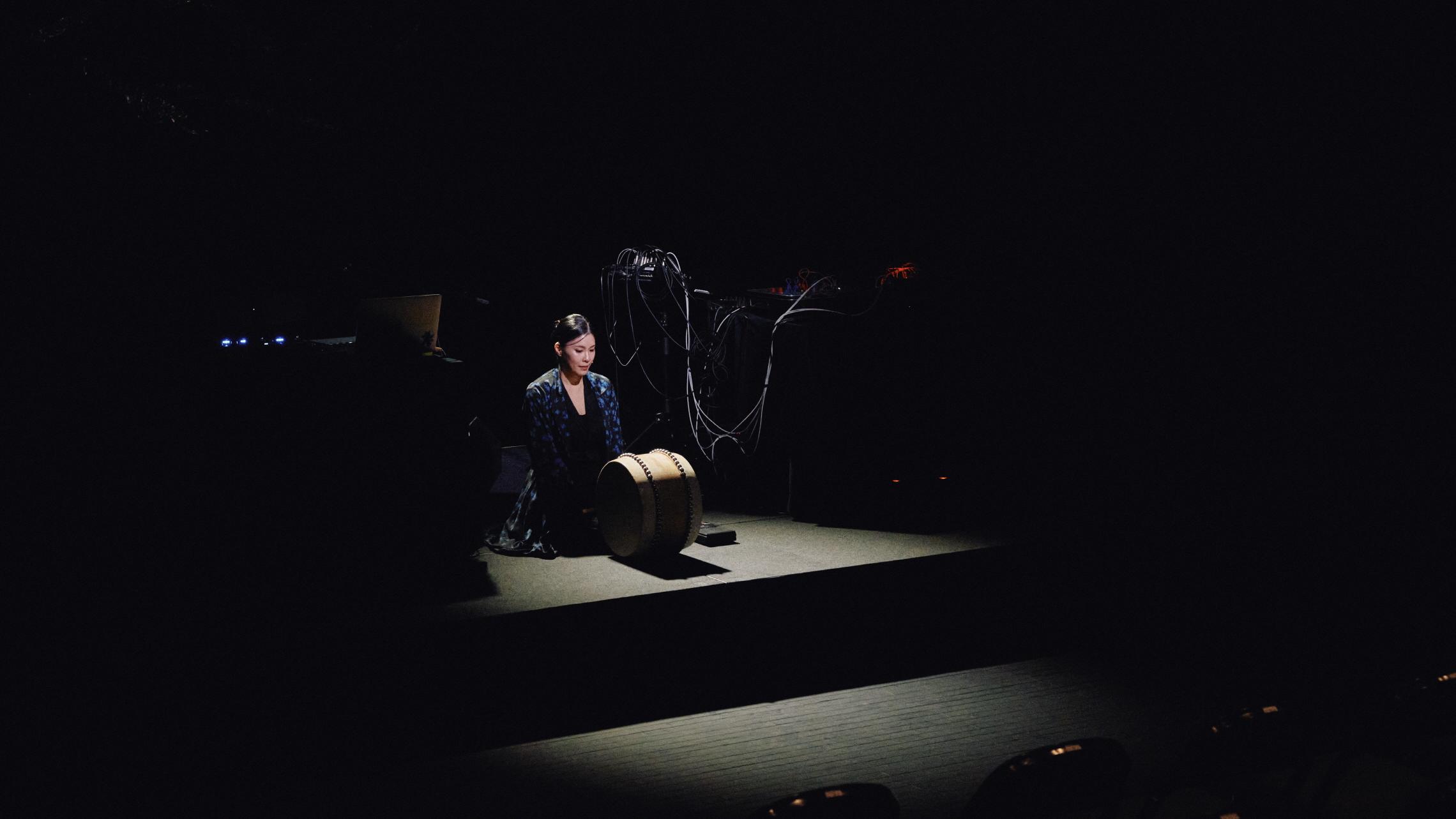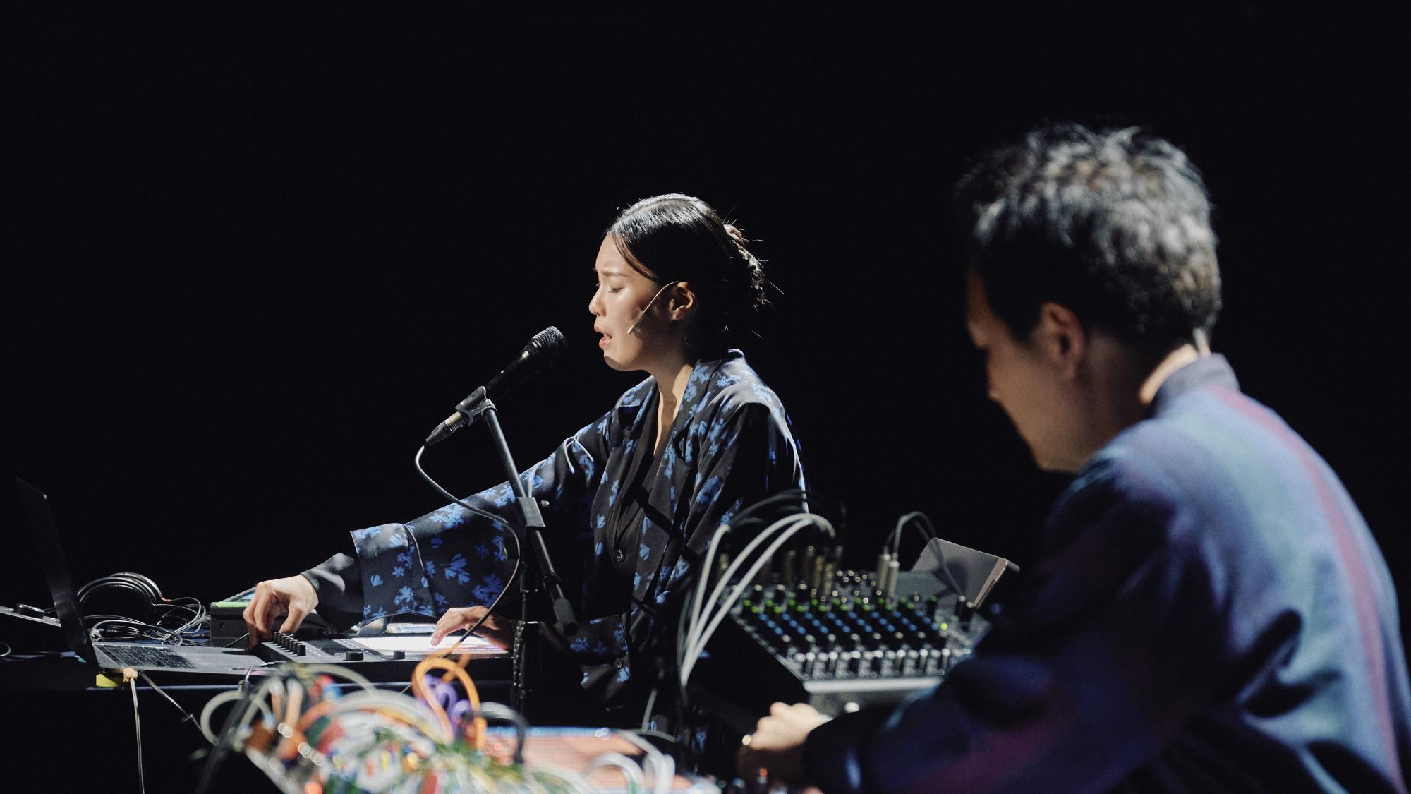 공연은 스승으로부터 판소리를 배우던 어린 시절의 육성을 무대 위로 호출하며 ‘작품 이전의 시간’을 현재로 끌어오는 것으로 시작된다. 이는 음악가로서의 생애를 선형적으로 배열하기 위해 시작점을 좌표로 찍는 행위처럼 보이지만, 작품이라는 ‘완성’된 시간에 작은 틈새를 만들어 ‘과정’으로서의 현재를 재생하게 만드는 장치이기도 하다. 또한 스승과의 시간을 호출함으로써 그의 음악이 다양한 관계 속에서 여과된 결과물이라는 점을 드러내고, 궁극적으로 열화된 샘플링 사운드와의 선명한 대비를 통해 무대 위 육성을 극적으로 전면화하는 전략으로 기능하기도 한다.