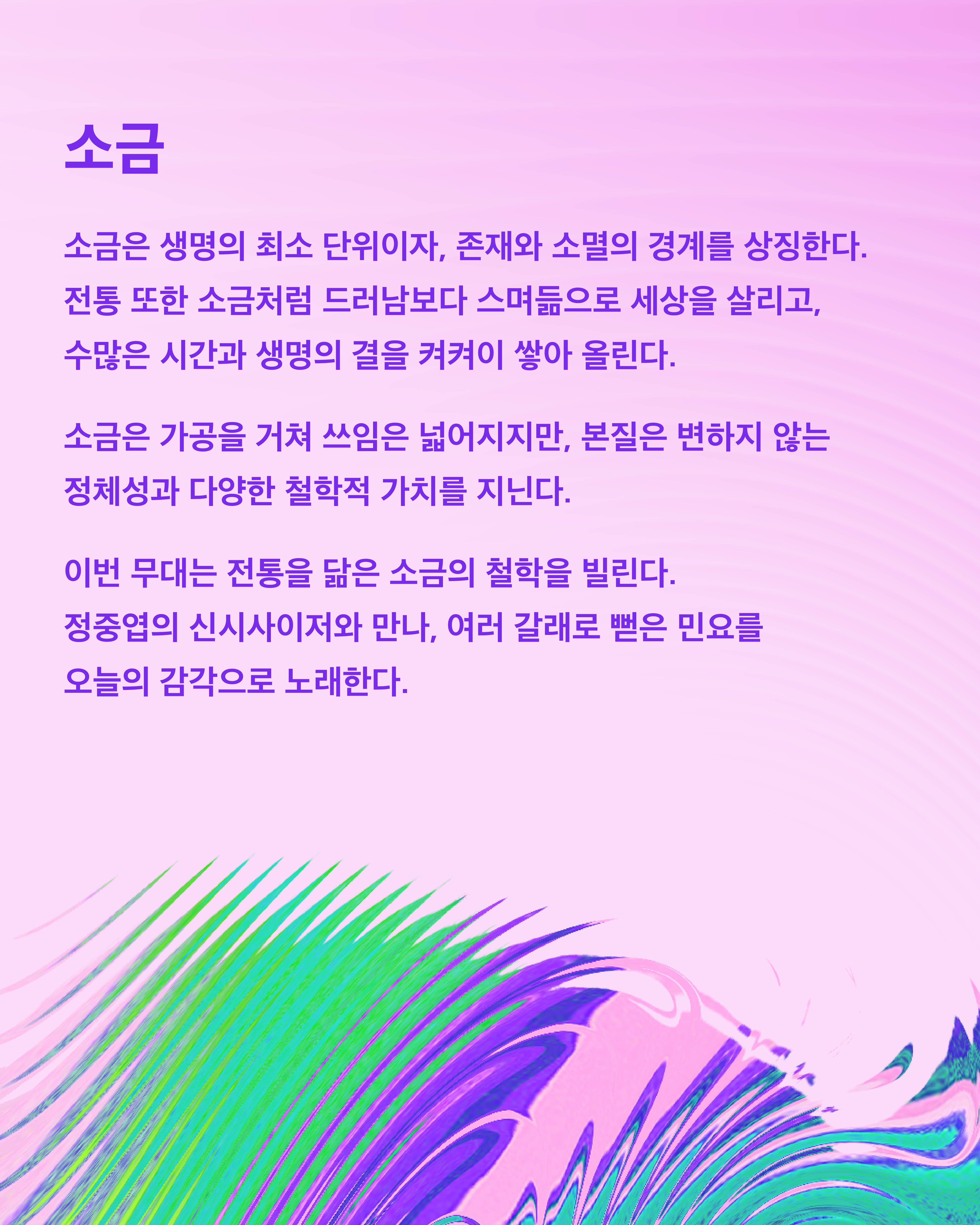 이번 무대는 전통을 닮은 소금의 철학을 빌린다.