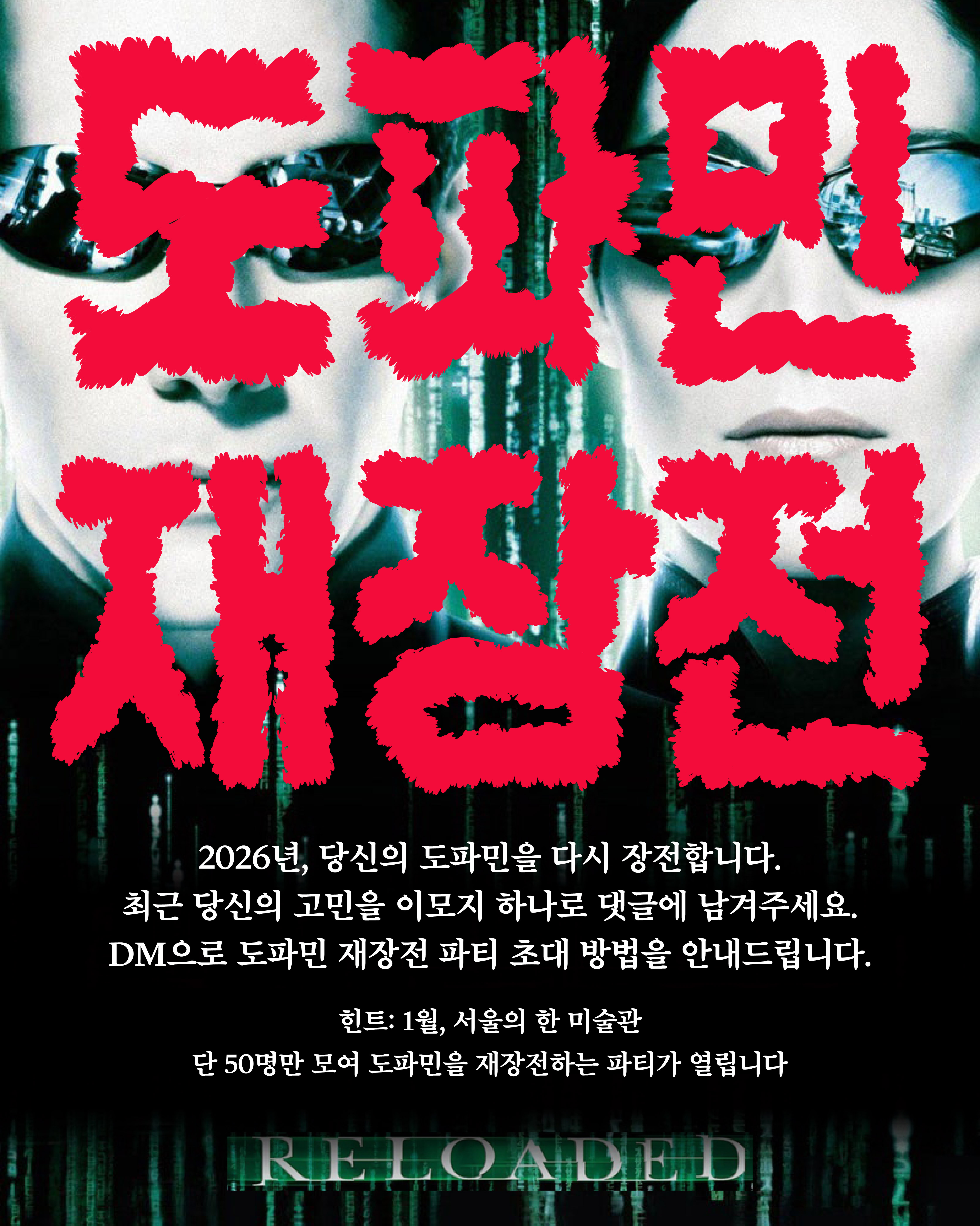 이번 연계프로그램은 전시의 세계관을 현실의 만남으로 확장해하여 관람객이 도파민적 감각—자극·연결·재정렬—을 실제 사회적 상호작용 속에서 ‘재장전(Re-loaded)’하도록 기획되었습니다.