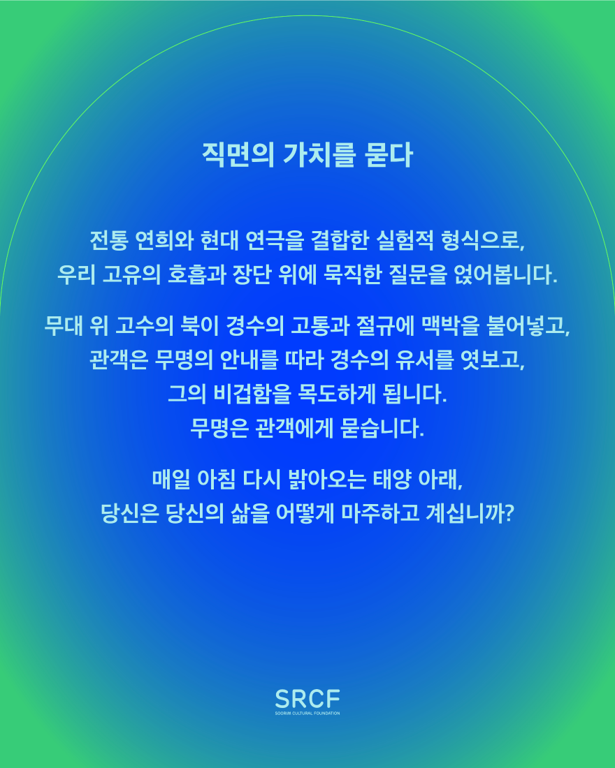 우리 고유의 호흡과 장단 위에 묵직한 질문을 얹어봅니다.