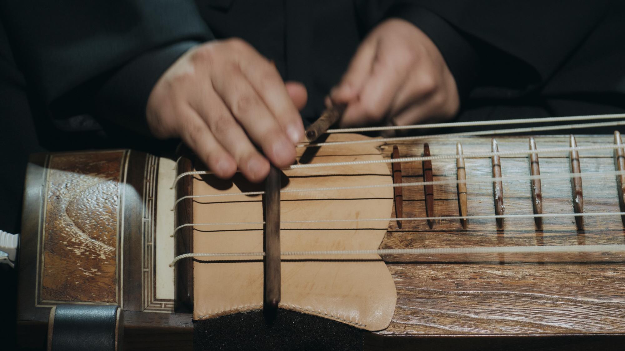 그렇게 구현된 이날의 신쾌동류 거문고 산조는 관객으로서의 평자에게 꽤나 흥미롭게 낯선, 낯설게 흥미로운 소리를 선사하였다. 악기와 술대가 만날 때마다 드러나는 울림의 양과 그 모양이 확연히 다르게 들렸다. 술대에 금의 몸을 때리고 긁는 소리 및 통이 울리는 소리가 훨씬 강조되었고 그것들이 지속되는 시간이 길어졌다. 또한 터치(attack) 후 음이 줄어드는(decay) 정도가 적어지고 지속(sustain)의 시간이 길어지면서, 전체적으로 여음이 커져 음과 음 사이로 차올랐다. 또 왼손의 움직임이 내는 여러 소리 예컨대 농현을 탈 때 손이 줄과 괘를 삐걱이는 미세한 소리, 줄이 괘와 서로 마찰하는 소리 등을 기존의 (자연음향 및 마이크 시스템을 포함한) 전형적 무대-관객 상황들과 비교했을 때 훨씬 크게 (혹은 듣지 못하다가 비로소) 듣게 되었고, 이를 감상의 풍경 일부로 포함하도록 하였다. ‘멀리서’ 들을 때와는 확연히 다른 ‘곁에서의 귀’가 건네어진 셈으로, 평자에게는 20세기 이전 지금의 무대가 아닌 공간성 속에서 들었을 어떤 악기와 소리와 사람의 관계를 새삼 사유하게끔 만드는 흥미로운 시간이 되었다. 고수가 없는 독연(獨演)이었다는 점이 이러한 거문고-음향에 대한 메시지에 더 집중할 수 있도록 하였다고도 생각된다.